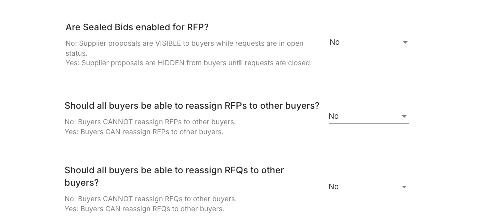 We take a staged rolled-out approach for significant new features and control access with a configuration. This allows you to collaborate with your Fairmarkit team to learn about the feature changes in advance and determine the optimal timing for adoption.