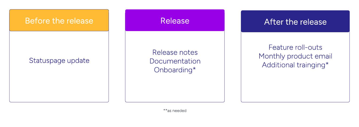 To stay updated with product updates, you can expect the following communications. This approach ensures you’re informed, prepared, and supported during and after product releases.