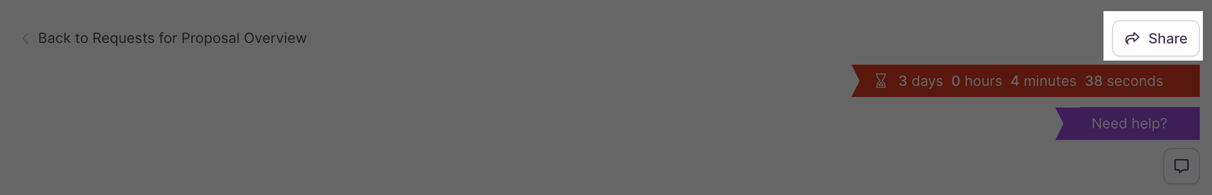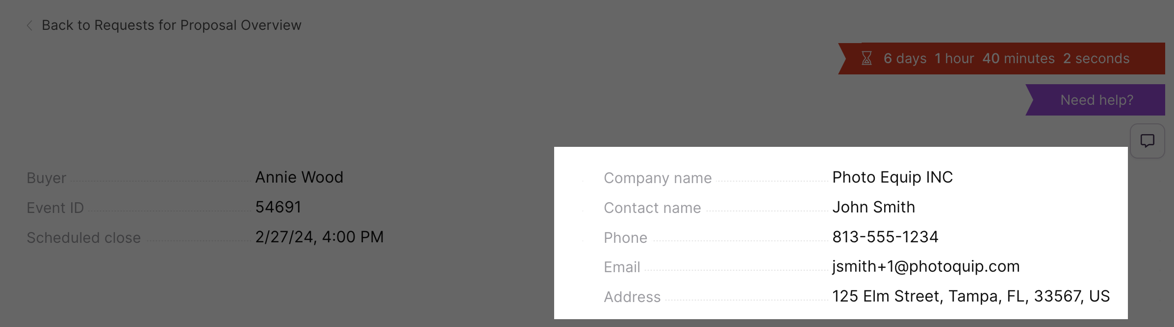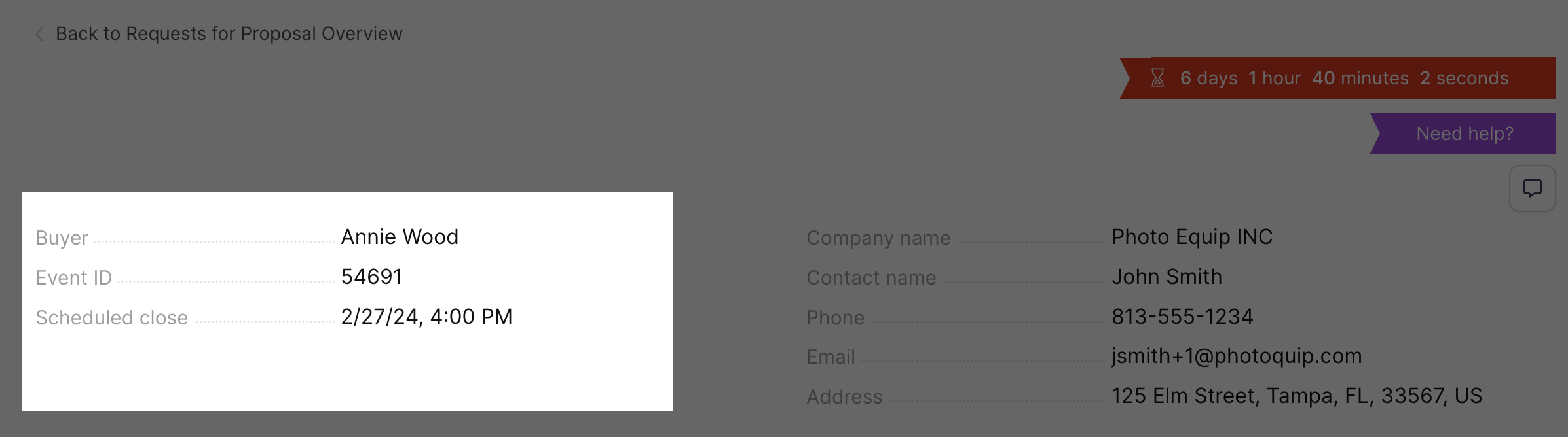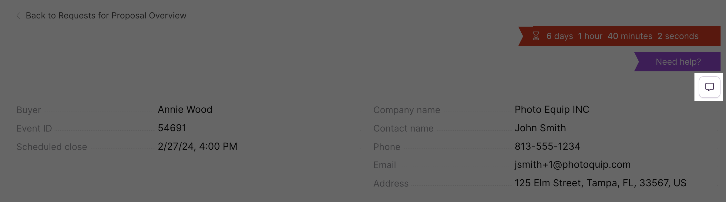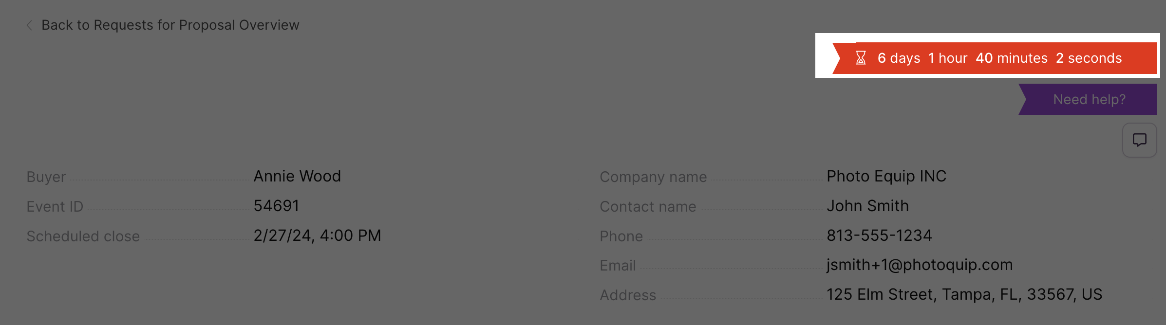 A countdown clock displays the remaining response time before an event closes. Keep in mind that a buyer can close an event early.
